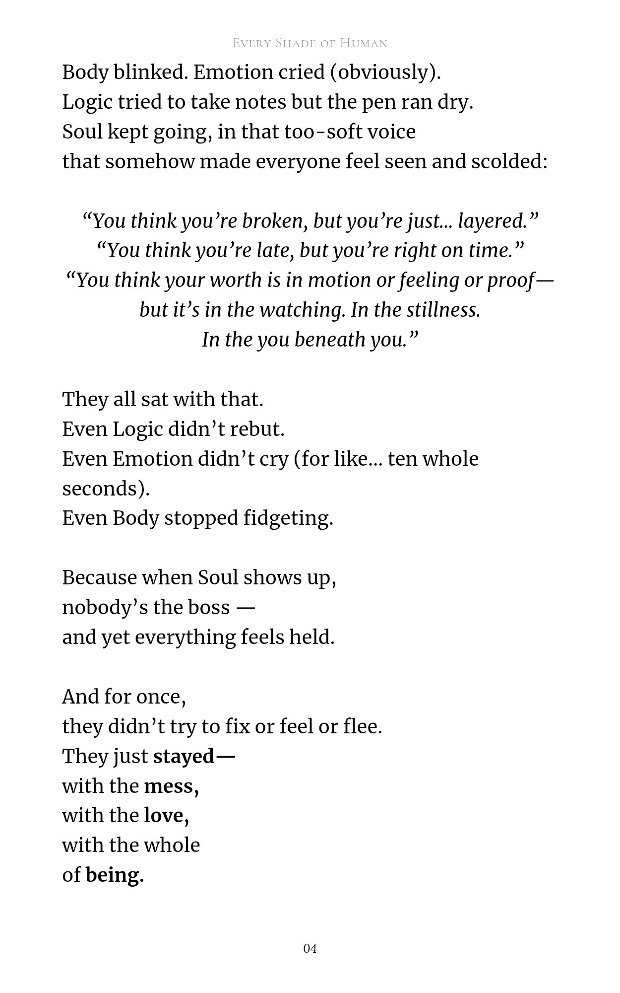 In the tradition of Milk and Honey meets The Princess Saves Herself in This One, but sharper, rawer, and refusing to perform palatability—Every Shade of Human is a collection that speaks to anyone who's ever been told they're "too much" while quietly carrying everything.